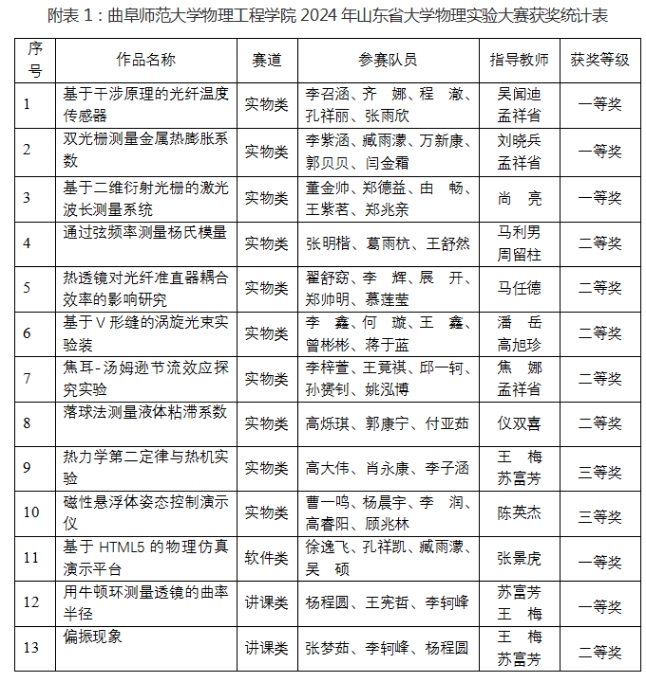 第十六届山东省大学生科技节-山东省大学生物理实验大赛分三个赛道(软件视频类、讲课类、实物类)分别在山东科技大学(软件视频类,线上,2024年7月15日)、济宁学院(讲课类,线下,2024年7月20日-22日)和济南大学(实物类,线下,2024年8月16日-18日)成功举办。bet365 在三个赛道上均派出参赛队,经过激烈角逐,再创佳绩。