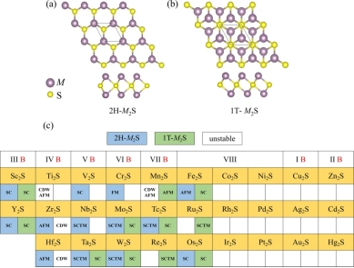 图1 (a-b) 2H和1T-MSenes的俯视图和侧视图;(c) 稳定MSenes的性质概述