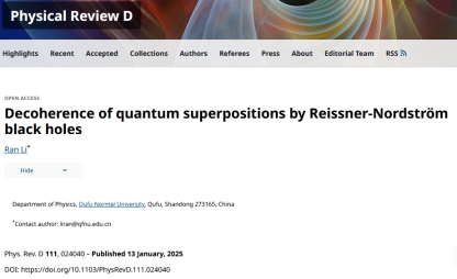 量子力学与广义相对论之间的相互关系,是现代基础物理最深刻的前沿课题之一。其中一个重要的问题是:强引力场如何影响量子相干性。黑洞由于其事件视界的因果特性和极端引力环境,为研究量子效应与引力效应之间深度耦合提供了独特而理想的“实验室”。课题组研究了Reissner–Nordström黑洞背景中量子态的退相干效应,利用弯曲时空量子场论的方法计算了退相干速率,揭示了量子态通过向黑洞视界发射低频光子实现退相干。特别地,对于极端Reissner–Nordström黑洞,黑洞Meissner效应会完全抑制这种退相干过程。此外还发现,Reissner–Nordström黑洞所引发的退相干效应等效于一个具有相同尺度和电荷分布的普通物质系统。这些发现为理解量子叠加态与引力背景之间的相互作用机制提供了新的物理视角。该研究成果发表在《Physical Review D》。