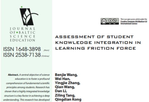 。这是我校首次在该期刊上发表教育研究类研究成果,标志着我校在物理教育研究领域实现了新的突破,也是我校持续推动教学改革和教育研究国际化的重要体现。