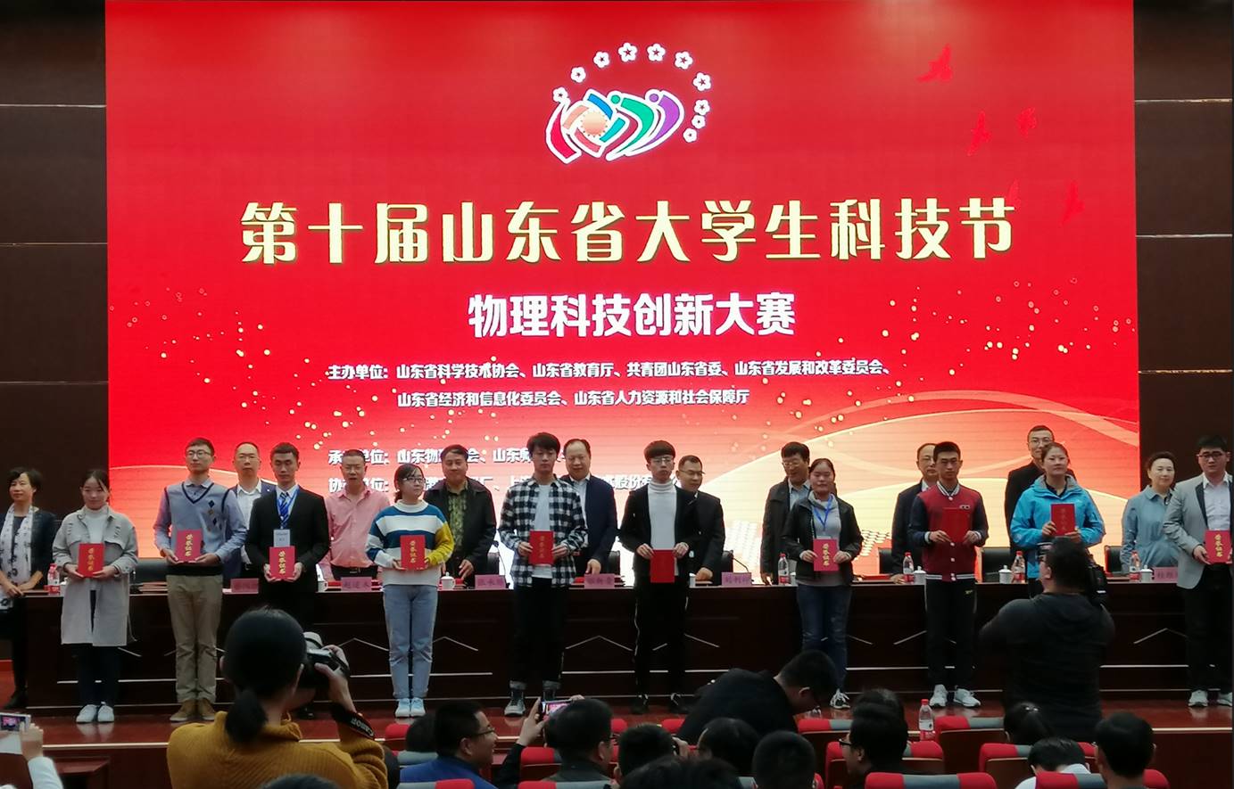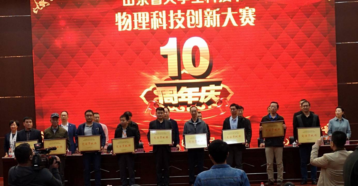 此次比赛正值山东省大学生物理科技创新大赛成功举办10周年之际,大会也借此举行了一系列的纪念活动,对大赛十年来做出特殊贡献的单位和个人进行表彰,我校因在该赛事的举办过程中所做出的突出贡献,揽得单位“突出贡献奖”、个人“突出贡献奖”和优秀指导教师等多个奖项。
