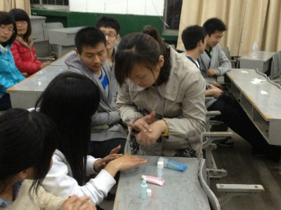 本次活动成功邀请到爱旗洗化的张晨光老师就护肤和彩妆两方面进行详细讲解。活动伊始,张晨光老师就以提问的形式与学生进行了热烈的讨论,随后指出学生在使用护肤品时应注意的问题,并对同学们在护肤时遇到的问题进行了详细的解答。在同学们的热烈要求下张老师邀请现场观众上台进行护肤体验,并仔细讲解各类护肤品正确的使用方法,引来同学们的诸多赞叹声。最后,张晨光老师还传授独家诀窍,就彩妆以及学生常用的简单发型设计进行现场演示,教给同学们怎样在最短的时间内轻松扮靓自己。
