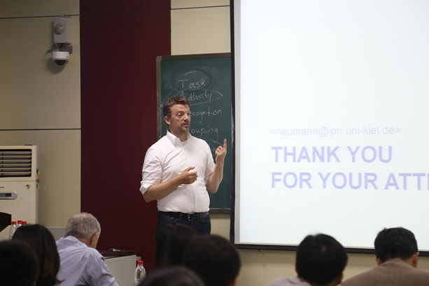 David Fortus教授以其严密的思辨首先对传统的“人为什么要学习科学”的观点进行了分析与驳斥,接下来他又以新颖的视角回答了“人为什么要学习科学”的问题。Knut Neumann教授的报告首先简单介绍了“核心科学能力及其培养”的理论,然后以“能量”概念的学习进阶为例对如何开展学习进阶研究进行了深入的阐述,最后说明了学习进阶研究成果如何指导我们的课程设计。报告结束后,两位教授分别与在场师生进行了广泛而深入的交流与讨论。David Fortus教授和Knut Neumann教授向李新乡教授赠送了他们的著作《Research Report 2013/2014: IPN Leibniz Institute for Science and