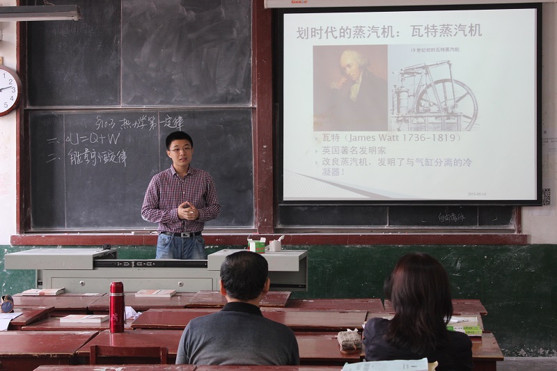 院楼209,310,404,407和412五个教室同时进行,比赛内容包括模拟上课和答辩两部分。模拟上课环节,选手自选内容,以讲授为主,以板书、板画、实物实验或多媒体演示实验为辅。答辩环节,参赛选手积极思考,灵活应答。评委老师凭借多年教学经验,指出了选手的不足,并对各位选手的讲课提出了宝贵意见。