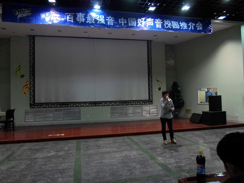 团总支承办的“百事最强音--中国好声音校园推介会”复赛在新大学生活动中心401教室举办。