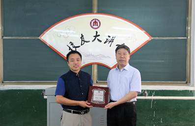 校友大讲堂上,孔祥木院长代表学校向为姜连国颁赠“校友大讲堂”铭牌。