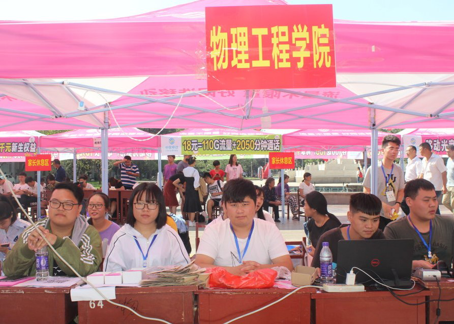 迎新现场,2017级同学以饱满的热情和热情的服务迎接每一位新生及家长,引导帮助新生办理一系列入学手续,一切都是紧张有序。本次迎新工作继续采用扫码报到和大数据实时汇总的方式,为新生报到提供了数字化便利。现场服务的往届同学根据各自分工主动带领新生前往学生公寓,帮助新生搬运行李并沿途介绍校园环境和建筑布局。学院楼前,综合咨询处的同学们为新生仔细解答疑惑并带领新生参观物理教学楼和实验楼,给他们讲解bet365