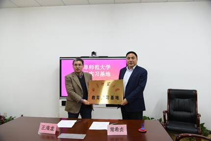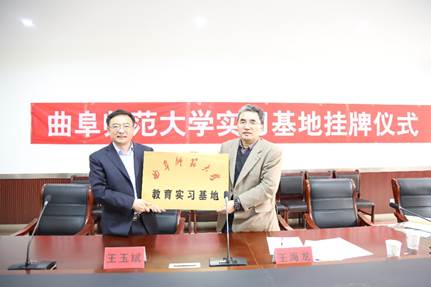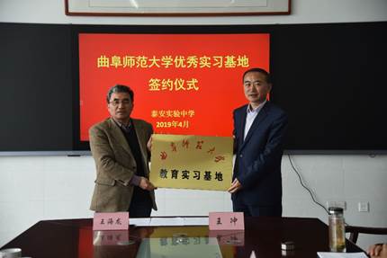 揭牌仪式上,王海龙副院长分别与泰安一中校长常希贞、泰安实验中学校长王冲、泰安市岱岳区开元中学校长王玉斌代表双方学校签署合作协议,并为教育实习基地揭牌。
