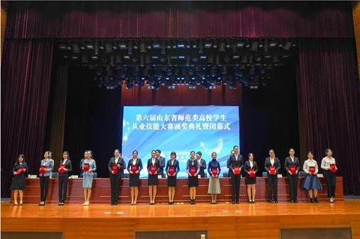在第六届山东省师范类高校学生从业技能大赛中再创佳绩(左起第7、8位为bet365