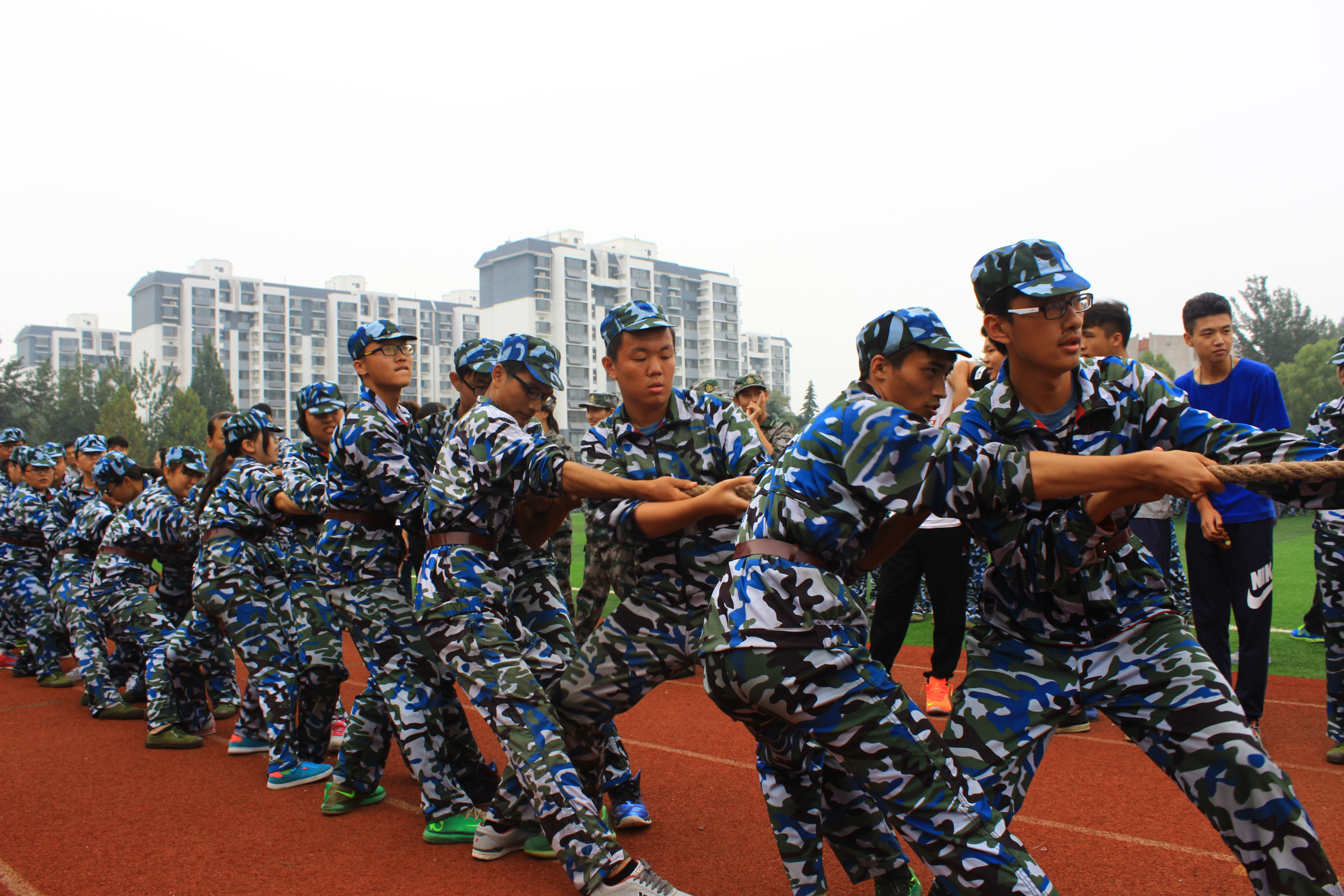 新生于西操场篮球场进行训练。在军训过程中,学院领导老师大力支持,学生会工作人员认真工作,2015级新生积极参与,军事训练顺利开展。