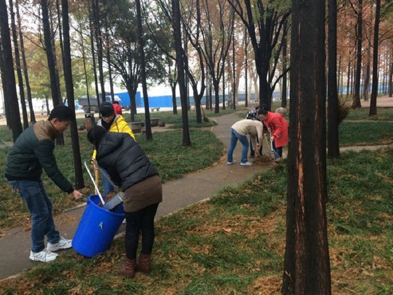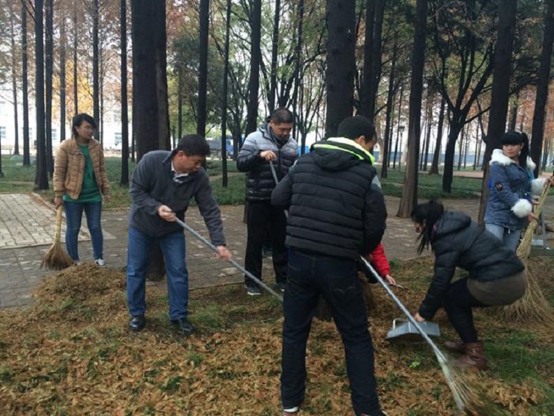 11月28日上午,bet365 2014级辅导员孙金杰亲自带领2014级物理学一班、二班、三班的部分同学,在bet365 卫生区清理落叶。