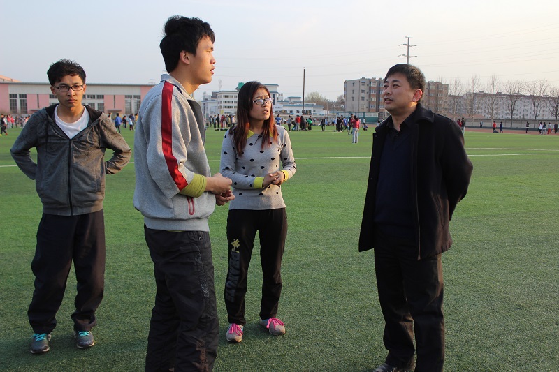 党总支副书记孙金杰老师前往西操场看望正在训练的同学,与大家分享了自己的运动体会,激励同学们挑战自我,不断攀上新的高峰。
