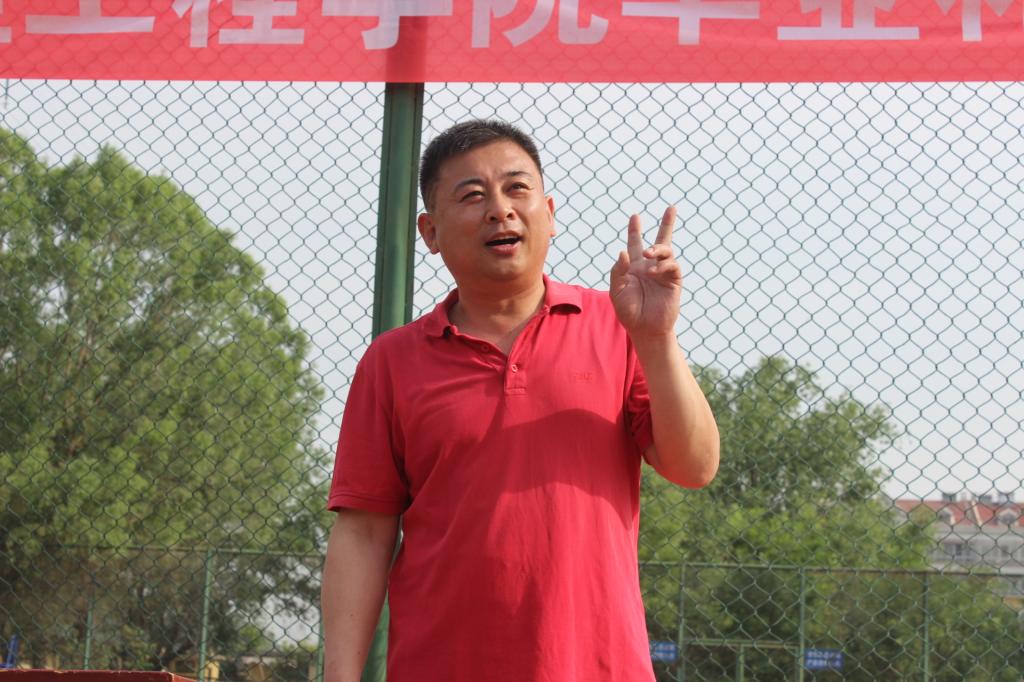 开幕式伊始,孙金杰发表讲话,他强调举办排球赛的目的主要有两点:一是发展排球事业,强健学生体魄。他诙谐地对同学们说道,有个好身体,幸福三代人,身体是革命的本钱,只有身体健康才能在人生路上有更好的建树;二是通过排球比赛来磨练同学们的意志。既然是比赛就会有输赢,胜利了不能得意忘形,因为谦虚使人进步,骄傲使人落后;失败了也不要气馁,总结经验以利再战。同学们要正确对待比赛,拿得起放得下。他在发言中讲到,排球赛是一个集体项目,非常注重团体合作,团体中的每个成员都要有团体合作意识和责任担当意识,为集体的荣誉而战。而要获得好成绩至少要做到三点,首先要有严肃认真的态度,其次要有科学的方法和持之以恒的精神,最后要及时总结经验教训、提高水平。接下来由裁判员代表王自东和队员代表马昆相继宣誓。最后,孙金杰为比赛开球,标志着2017年毕业杯排球赛正式开赛。