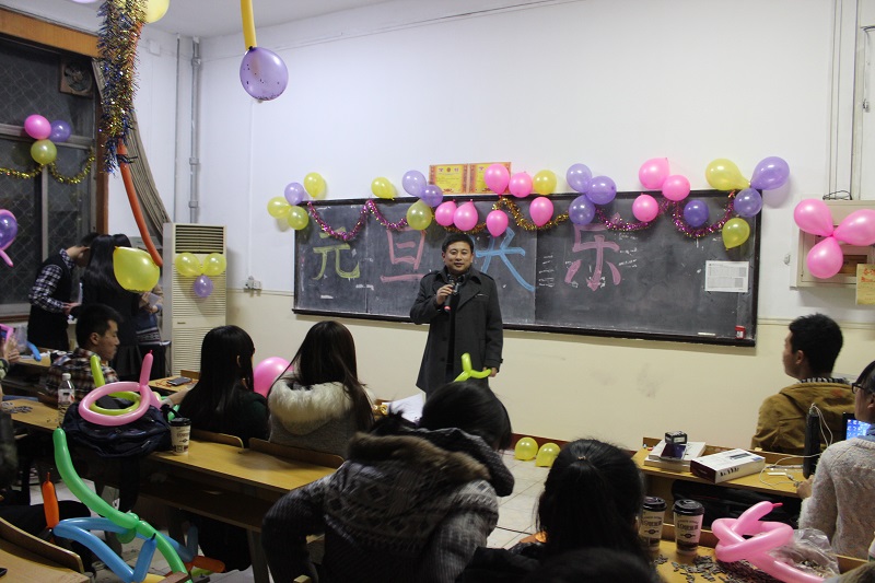 党总支副书记、2014级辅导员孙金杰和团总支学生会主席团成员为同学们送上新年祝福。