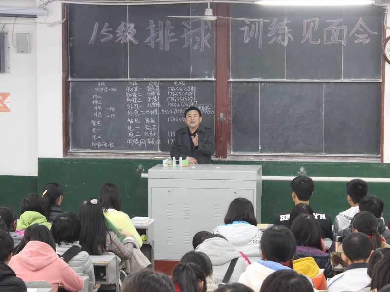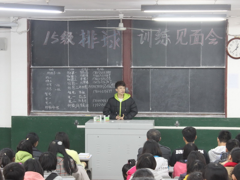 学生会体育部组织的2015级排球训练开幕式在院楼二阶一教室举行。党总支副书记孙金杰、学生会副主席李永超、体育部成员、2014级排球教练以及2015级排球队全体成员参加了本次活动。