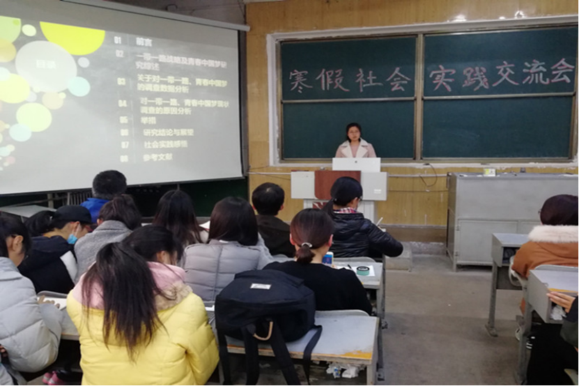特色活动“牛顿科普小讲堂”,并说明社会实践活动过程及实践报告格式要求等具体内容。随后,由社会实践部部长郭玉颖为暑期社会实践优秀成员及团队进行颁奖。颁奖环节结束后,分别由学院社会实践优秀代表古丽波斯坦、李蒙杰、齐艳青、亓志扬等同学就教育、环保、“丝绸之路”、寒暑假计划调查四个方面介绍自己及所在团队在社会实践方面的经验,并由周彦庆讲述他精彩的搭车之旅。期间,同学们认真听讲、积极互动、受益良多。最后,社会实践部部长郭玉颖对本次交流会做相关补充并就同学们的相关问题做出解答。