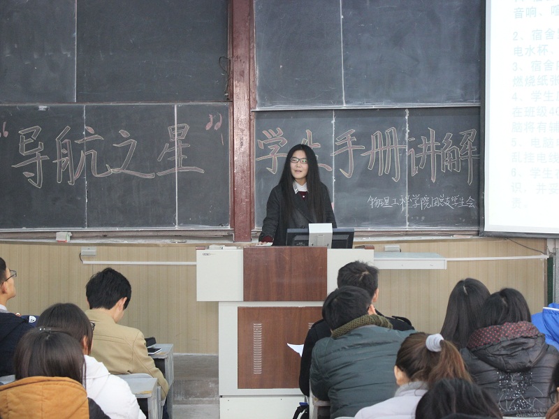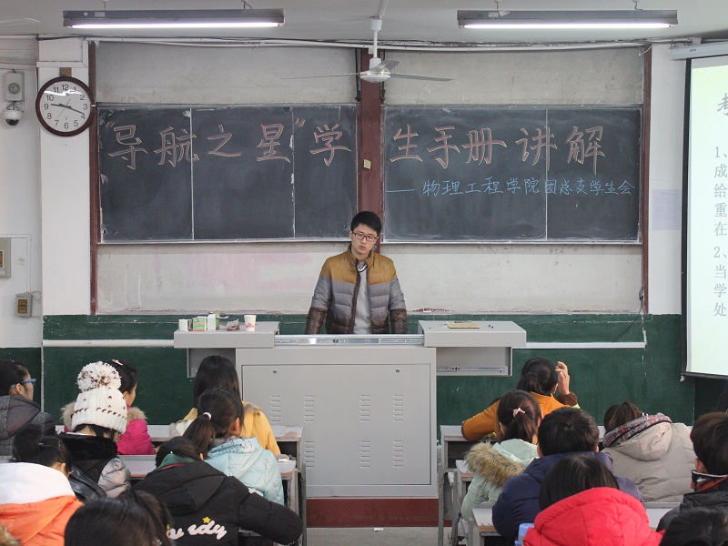 团总支主办,学生会有关部门承办的“导航之星”《学生手册》讲解活动在学院楼阶梯教室举行。2015级全体同学参加本次活动。这次活动也是新生入学教育的一部分。