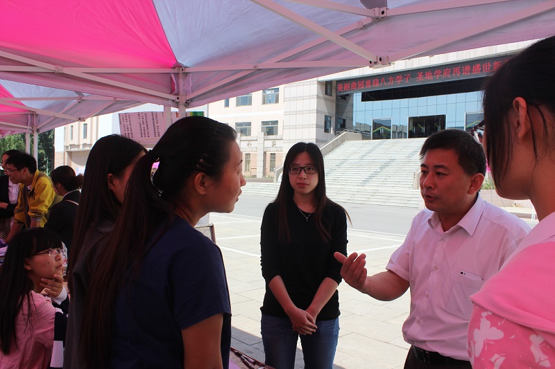 在院楼前展出了“杰出校友”、“考研光荣榜”和“实验设备”的展板,让新生和家长对bet365