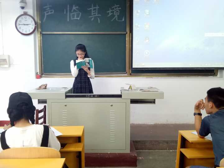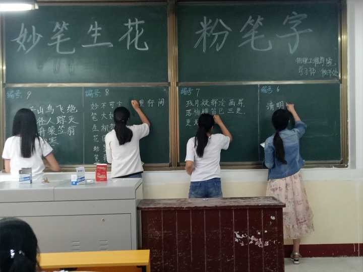 本次活动共分为“妙笔生花粉笔字”“入木三分硬笔字”和“声临其境普通话”三个部分。在“妙笔生花粉笔字”和“入木三分硬笔字”比赛中,选手们神情专注,用心书写每一个汉字;其作品端正秀气、行款整齐,展示同学们的才艺特长。与此同时,“声临其境普通话”紧张激烈地进行,比赛形式丰富多样,选手们通过抑扬顿挫、婉转抒情的配音、朗诵等方式展现自我,比赛激烈且精彩。