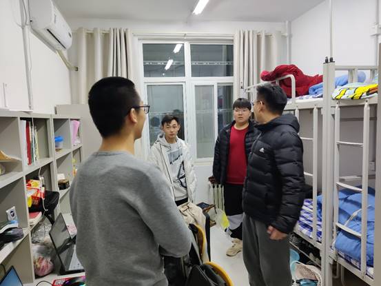 为落实学校新学期学团工作会议中关于加强学生宿舍安全排查的相关要求,深入了解学生学习生活状态,3月9日下午,团委书记王琼,辅导员李爱国、颜冲、孔瑞、邱金芝、王衡分别前往西公寓和北公寓进行走访。