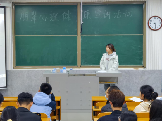 心理委员队伍朋辈心理辅导技能水平,4月6日晚,学院于物理楼二阶一教室举办朋辈心理健康宣讲活动。本次活动由心理健康部组织,各班心理委员和心理信息员参与。心理健康部副部长吴思思进行宣讲。