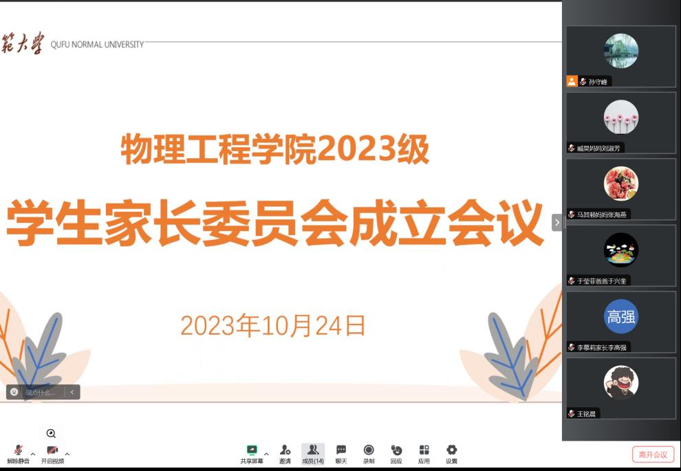 讯(通讯员:刘怡萱 王雪晴 摄影:赵政飞)为进一步落实立德树人根本任务,搭建家校交流平台,10月24日下午,学院通过腾讯会议召开2023级学生家长委员会成立大会。2023级辅导员邱金芝、王铭晨出席会议,2023级学生家长委员会参加会议,会议由邱金芝主持。