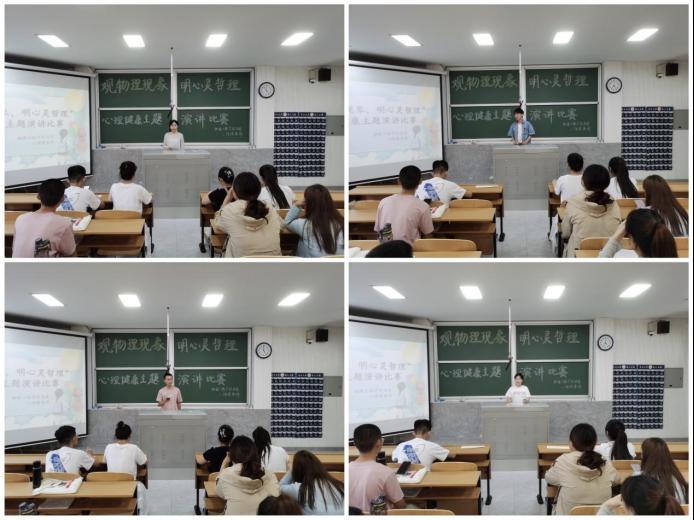心理健康主题演讲比赛上,同学们以“观物理现象,明心灵哲思”为中心思想,讲述心理学知识,聚焦物理现象,分享心理调适方法。