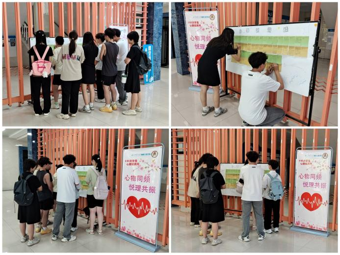 讯(通讯员:李文静 刘露洁 摄影:赵政飞 刘怡萱 李依诺)为强化学生心理健康意识,引导学生关注自我心灵成长,5月1日至30日,学院开展“心‘物’同频,悦‘理’共振”心理健康月系列活动。活动由心理辅导员朱佳文指导,学院团委心理健康部承办,学院学生积极参加活动。