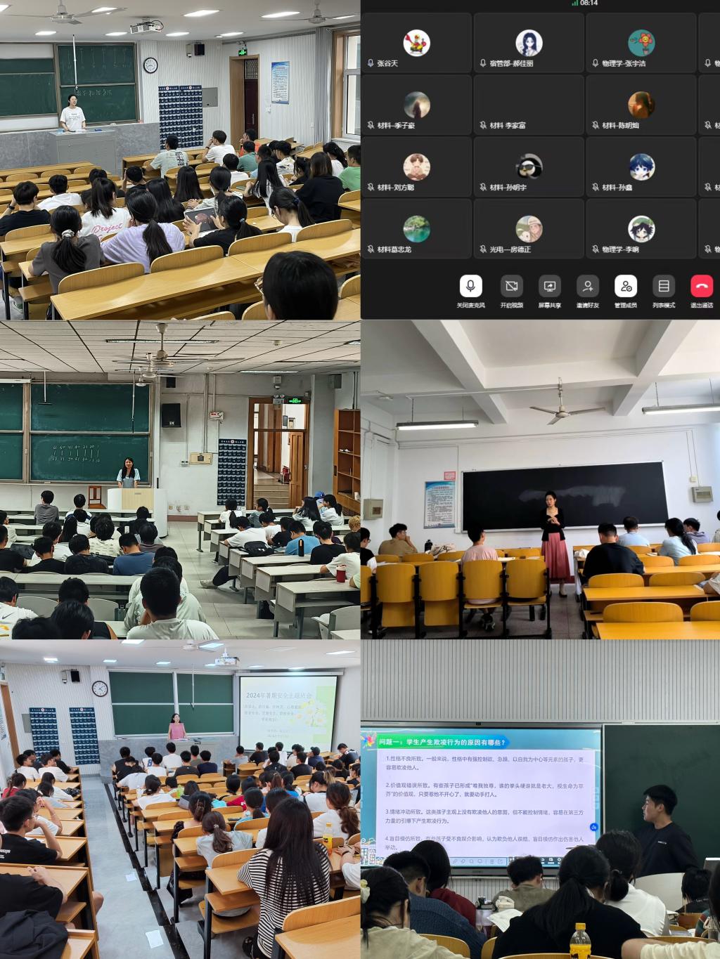 各年级辅导员结合当前社会安全形势和生活实际,借助近年来发生的典型案例,重点围绕暑期交通安全、防溺水防汛安全、心理健康安全、饮食安全、用电安全等多个方面进行了讲解,强调提高警惕、防范隐患的必要性,引导学生筑牢安全防线。会上,辅导员们指出,要提高防交通事故、防意外伤害、防火防电等安全意识,严格遵守各项安全规定;要防范网络诈骗,慎重网络贷款,谨防上当受骗;要注意劳逸结合,合理安排作息时间,保持良好的生活习惯。同时要求暑期留校学生增强纪律意识,严格遵守校规校纪,与家长和老师保持信息畅通,共同维护校园的安全稳定。