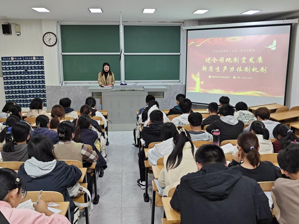 宣讲围绕“健全因地制宜发展新质生产力体制机制”和“凝聚青年力量,建功伟大时代”两大主题展开。宣讲团指出新质生产力与高质量发展的内在联系,多角度剖析新质生产力体制机制;从习近平总书记在二十大报告中对青年的重要寄语着手,借助跨越百年的群像对照,诠释爱国进步、勇往直前等青年精神内涵。学生表示将坚定听党话、跟党走的政治信念,争做“有理想、敢担当、能吃苦、肯奋斗”的新时代好青年。