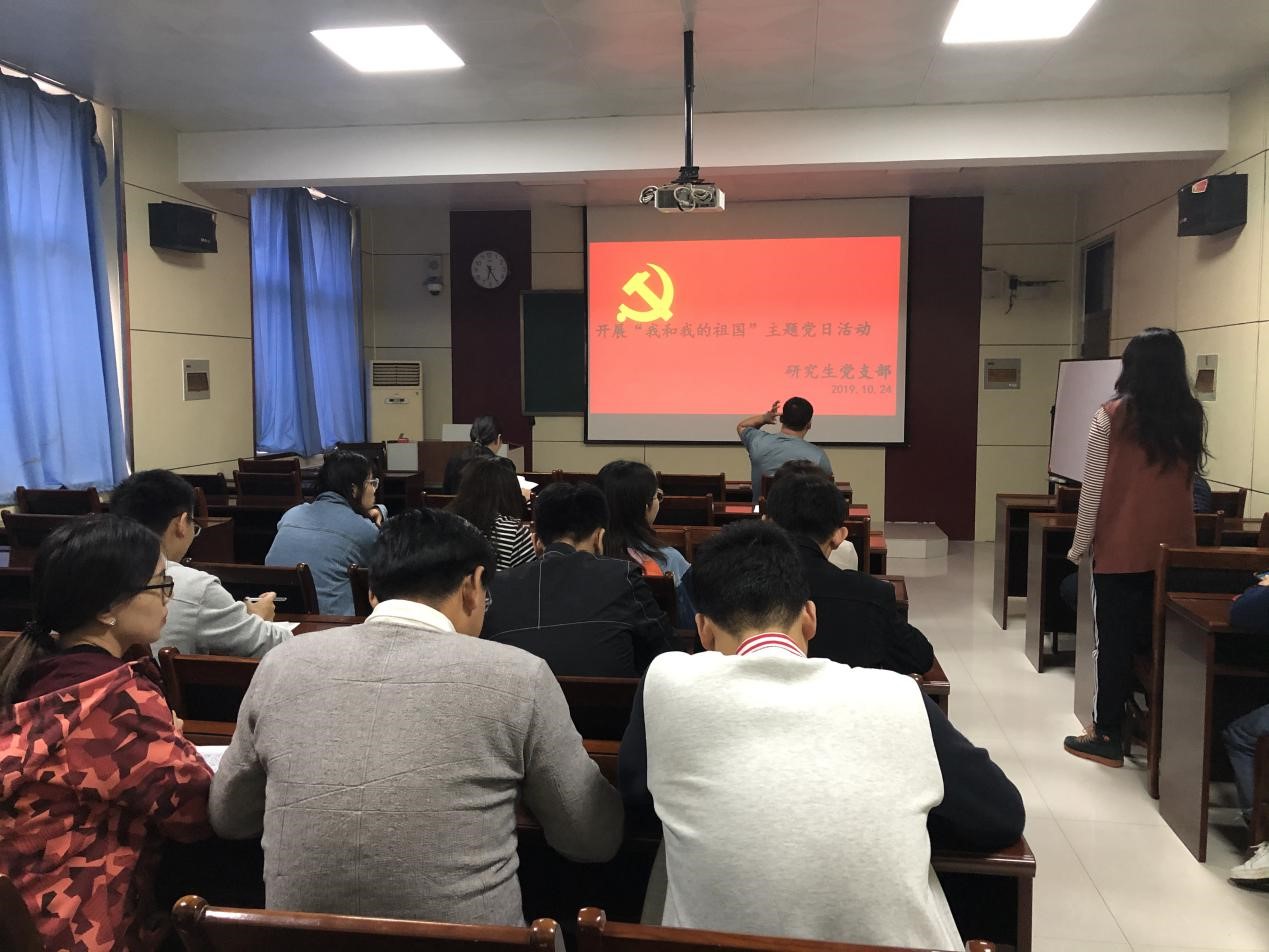 研究生党支部在物理楼313教室开展“我和我的祖国”主题党日活动,研究生党支部全体党员参加,活动由陈婷同志主持。