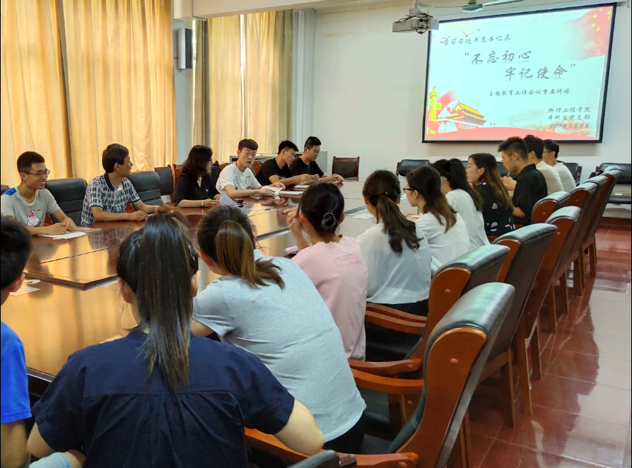 本科生党支部积极响应学习号召,组织学生党员和部分入党积极分子开展主题党日活动,学习“习近平总书记在‘不忘初心,牢记使命’主题教育工作会议的重要讲话”内容。活动由本科生党支部书记王琼主持。