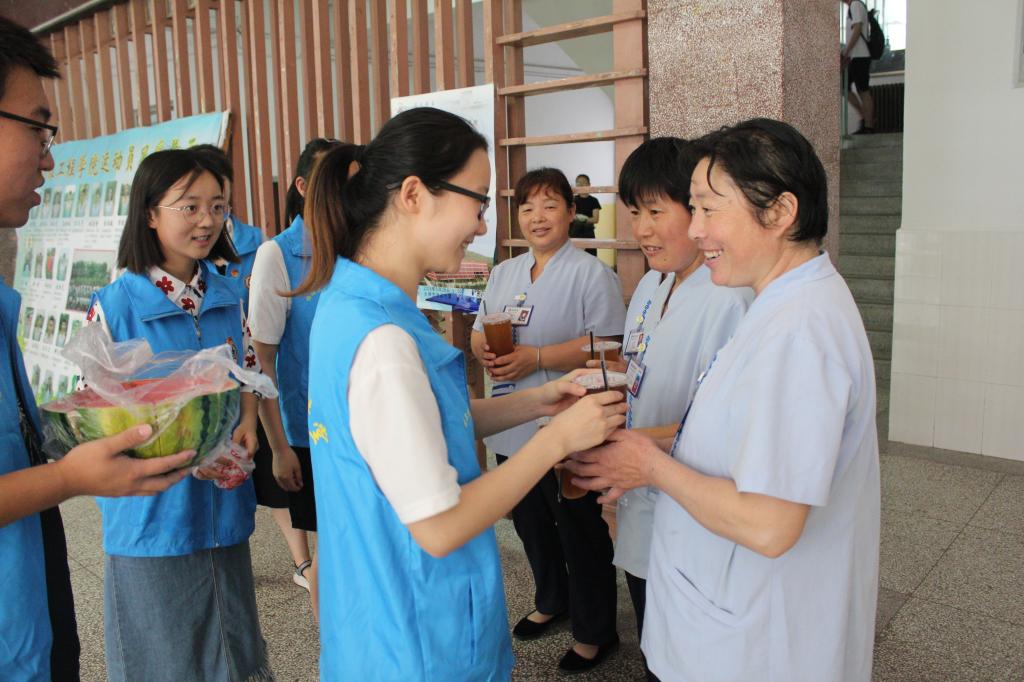 本次志愿服活动共有三部分组成,早上,志愿者们到达教职工餐厅进行“餐具回收,爱心传递”,在餐厅帮助工作人员回收餐盘;而后志愿者们来到学院教学楼,逐个楼层排查,关闭空闲教室的吊灯和风扇、拧紧滴水水龙头等,身体力行倡导节能减排;接着志愿者们将专门购置的西瓜和饮品赠送给学院教学楼的物业工作人员,感谢他们为同学们提供良好的学习环境,为他们送去炎炎夏日中的清凉。
