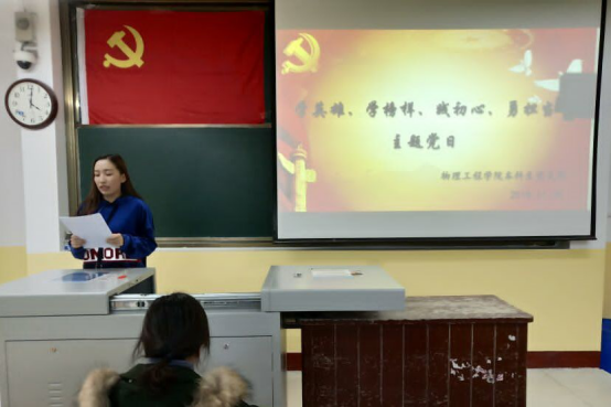 本科生党支部主办的“学英雄、学榜样、践初心、勇担当”主题党日活动在院楼209教室举行,活动由党支部书记王琼主持。