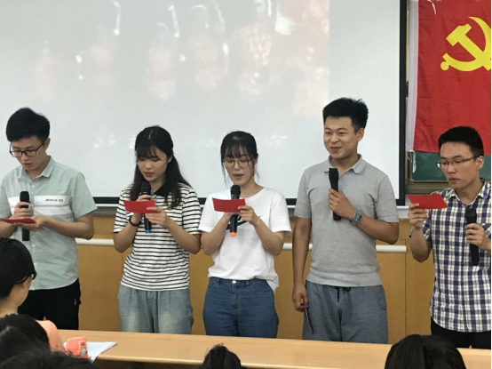 活动伊始,全体与会党员合唱国际歌》。随后,按照中国共产党成立以后发展的时间顺序,同学们逐一唱响反映中国共产党在不同历史时期的革命歌曲。表现共产党不畏艰险、百折不挠人民军队忠于党》到歌调轻快欢乐的《南泥湾》;从充满希望的《东方红》到歌颂社会主义建设欣欣向荣的《社会主义好》从体现新中国朝气蓬勃的《团结就是力量》到赞颂共产党带领人民走向富强的《走进新时代》。有大合唱也有小合唱,有男女声二重唱也有引吭高歌的独唱,一首首革命歌曲,唱出了大家对党和国家的深厚情感。最后,孙书记鼓励大家以此次活动为契机,进一步增强党员意识和党性意识,永葆共产党员政治本色。