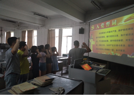 活动伊始,李永超同志向大家传达了关于规范党员干部网络行为的通知,着重指出党员干部在网络上要严守政治纪律和政治规矩,随时以高标准严格要求自己;接下来,刘晓坤同志代表支委会带领全体党员同志认真学习了《习近平新时代中国特色社会主义思想三十讲》中第三讲的内容,重点强调了实现中华民族伟大复兴是近代以来中华民族最伟大的梦想,全党都要为之不断奋斗;随后,孙海瑞书记向大家详细介绍了十九大召开以后颁布的《中国共产党章程(修正案)》中修改的主要内容,使各位党员同志对新党章有了进一步的了解;最后,孙海瑞书记带领大家以集体宣誓的方式重温入党誓词,回顾入党宣誓时的庄严承诺和坚定决心,增强党员的责任感和使命感。