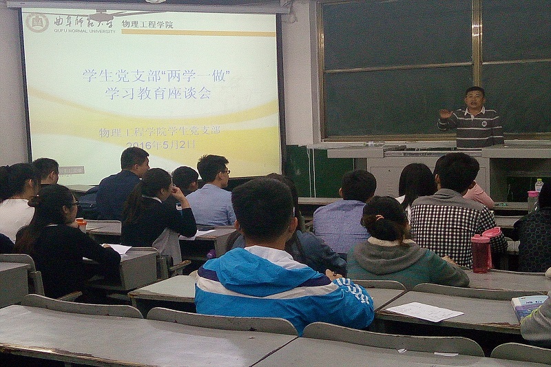 5月2日下午,学生党支部“两学一做”学习教育座谈会在物理楼二阶一教室举行。党总支副书记孙金杰主持本次座谈会并发表讲话,学生党支部全体党员参加了会议。