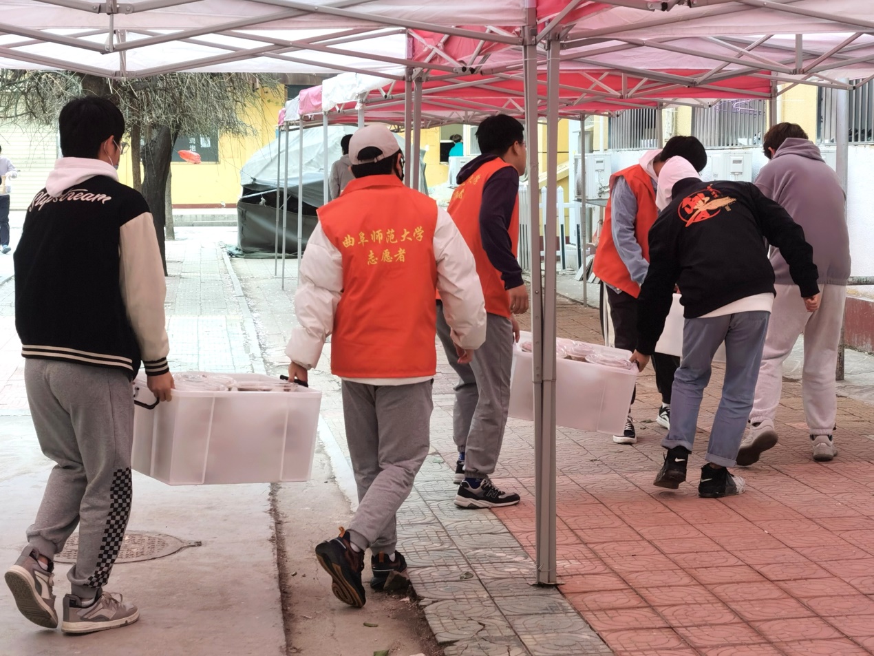 “我是党员,我报名!”“志愿者名单先排上我,我随时都可以!”为落实学校疫情防控工作部署,缓解低年级志愿者压力,学院本科生党支部决定组建党员志愿服务队,协助完成宿舍送餐等任务。一份面向北公寓招募党员志愿者的通知刚发出去不到半小时的时间,北公寓几乎全体党员参与报名。志愿者队伍分成多个小组,分工管理不同学生宿舍公寓的配餐服务,为学院北公寓1000多名学生配送早、中、晚饭,每日及时将热腾腾的饭菜送到同学们的手中。毕业生党员刘瀚森表示:“作为一名中共党员,总想着能尽自己的一份力量,为同学们服务,让师弟师妹安心上课。”