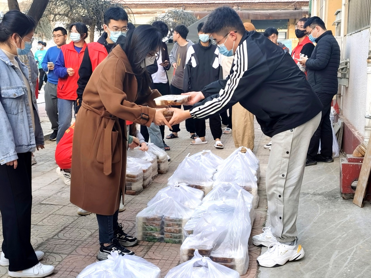 高年级学生党员在响应学校防疫要求,做好自身防护的情况下,主动 “请战”,在疫情防控工作中担当志愿者,承担餐食配送等工作,充分展现了大学生党员精神风貌。