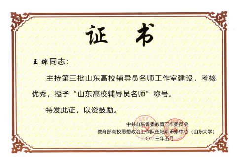 学院党委副书记王琼被授予“山东高校辅导员名师”称号