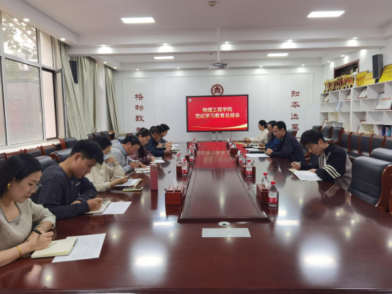 在物理楼225会议室召开党纪学习教育总结会,总结学院党纪学习教育工作,部署党纪学习教育常态化开展。党委书记于健、党委副书记王琼、党委组织员及各党支部书记参加会议。