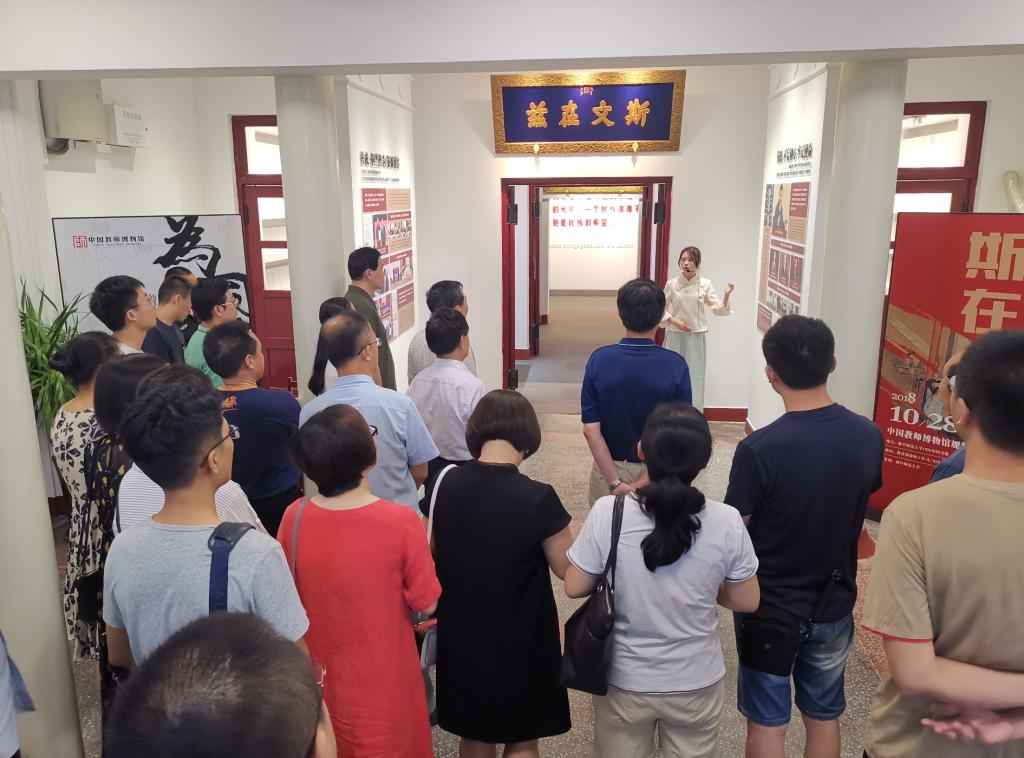 步入中国教师博物馆展厅,首先映入眼帘的是仿自孔庙的“斯文在兹”匾额,旨为彰显“传承斯文、褒扬斯文”的办馆思想。讲解员从“教师之祖”“教师之史”“教师之道”“教师之器”“教师之所”等展区进行了详细的讲解。全体成员怀着崇敬的心情,感悟中国教师故事,领会教师文化精神内涵,触摸中国教育变迁,不禁感慨良多。老师们纷纷表示,参观中国教师博物馆,让自己深深感受到作为一名教师的光荣,同时对中国教师博物馆设立在我校充满了自豪和骄傲。