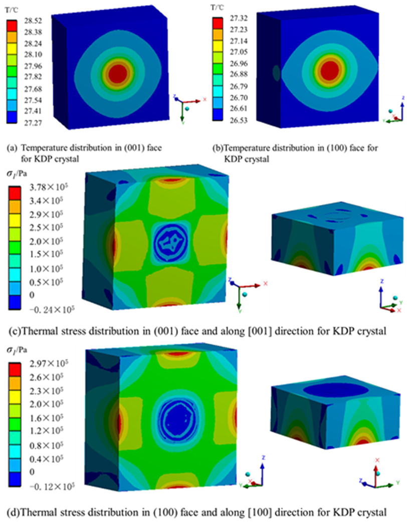 图5 弱吸收诱导KDP晶体温度梯度及热应力分布