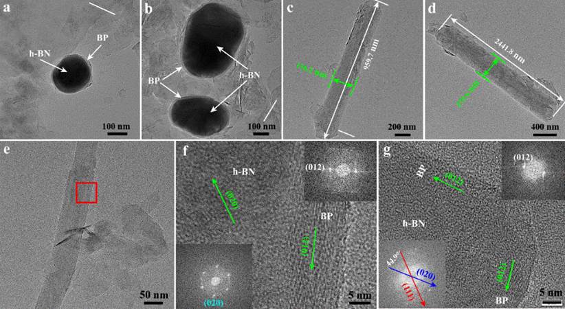2 制备一维黑磷-氮化硼异质结TEM图谱