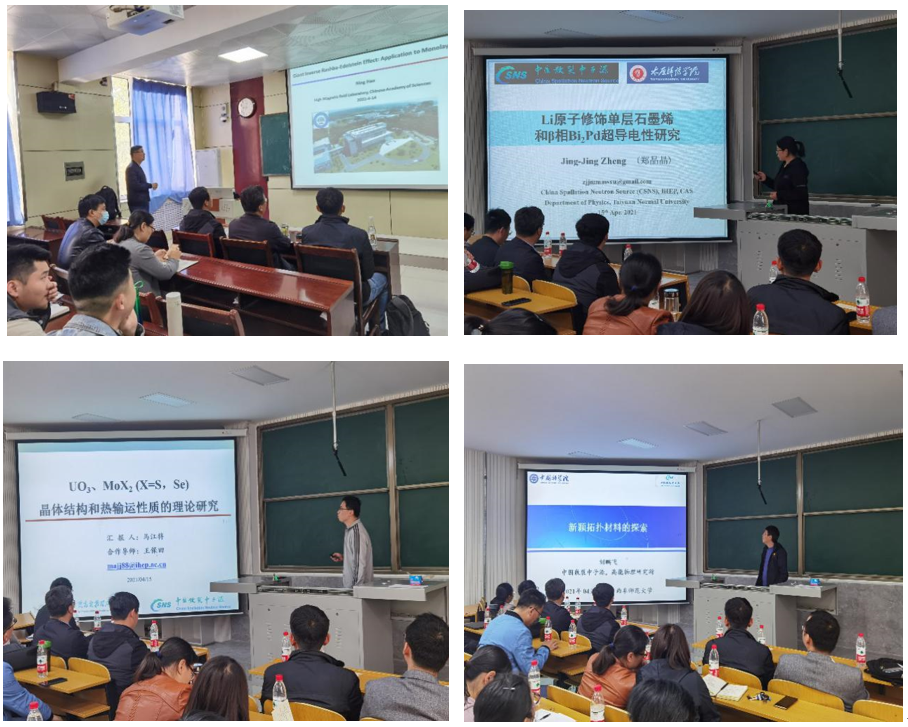 师生进行了深入、热烈的讨论与交流。报告会分别由付吉永教授和路洪艳教授主持。学术报告之余,各位专家听取了量子功能材料计算与设计创新团队正在开展的各项研究工作,并进行了深入的交流与指导。