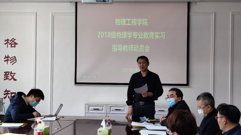 会上,曹丙强院长指出,教育实习是物理学专业的一项重要教学实践活动,对学院物理学学科建设和发展具有重要意义,希望指导教师对标师范专业认证要求,认真开展教育实习工作,切实增强师范生的教学技能水平。