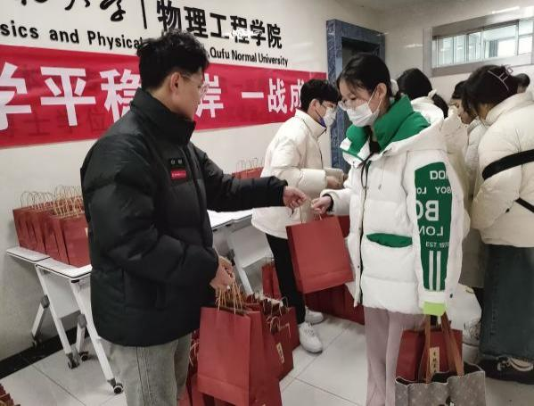 此次“加油包”是学院为考研学子定制的一份特别的礼物。红色的袋子象征着吉祥、喜庆、斗志,“考研上岸”“金榜题名”“未来可期”三个标签代表着学院对考研学生的美好祝愿;内含苹果、橙子、暖贴、咖啡、糖果、励志徽章,寓意“苹”稳上岸、一战“橙”硕。另外,学院提前绘制了考研祝福征集板,并将低年级同学的手写祝福贴纸放进“加油包”,“终会上岸,阳光万里”“守得云开见月明”......字里行间给予考研学生温暖及鼓励。