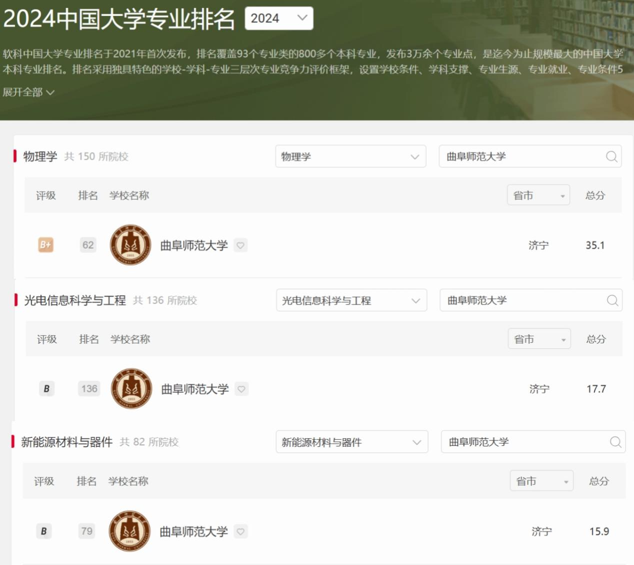 据软科2024中国大学专业排名,学院国家一流本科专业建设点物理学专业为B+层次,居全国高校第62位,省属高校第3位。省级一流本科专业建设点光电信息科学与工程专业、新能源材料与器件专业均成功进入B层次。物理学专业顺利通过教育部师范专业认证中期审核,审核专家组通过查阅70多门近三年专业核心课程原始材料(含课程目标达成度报告),对物理学专业建设取得的成绩给予充分肯定,认为其在课程考核、课程目标达成情况评价以及评价机制等方面的改进工作成效显著。