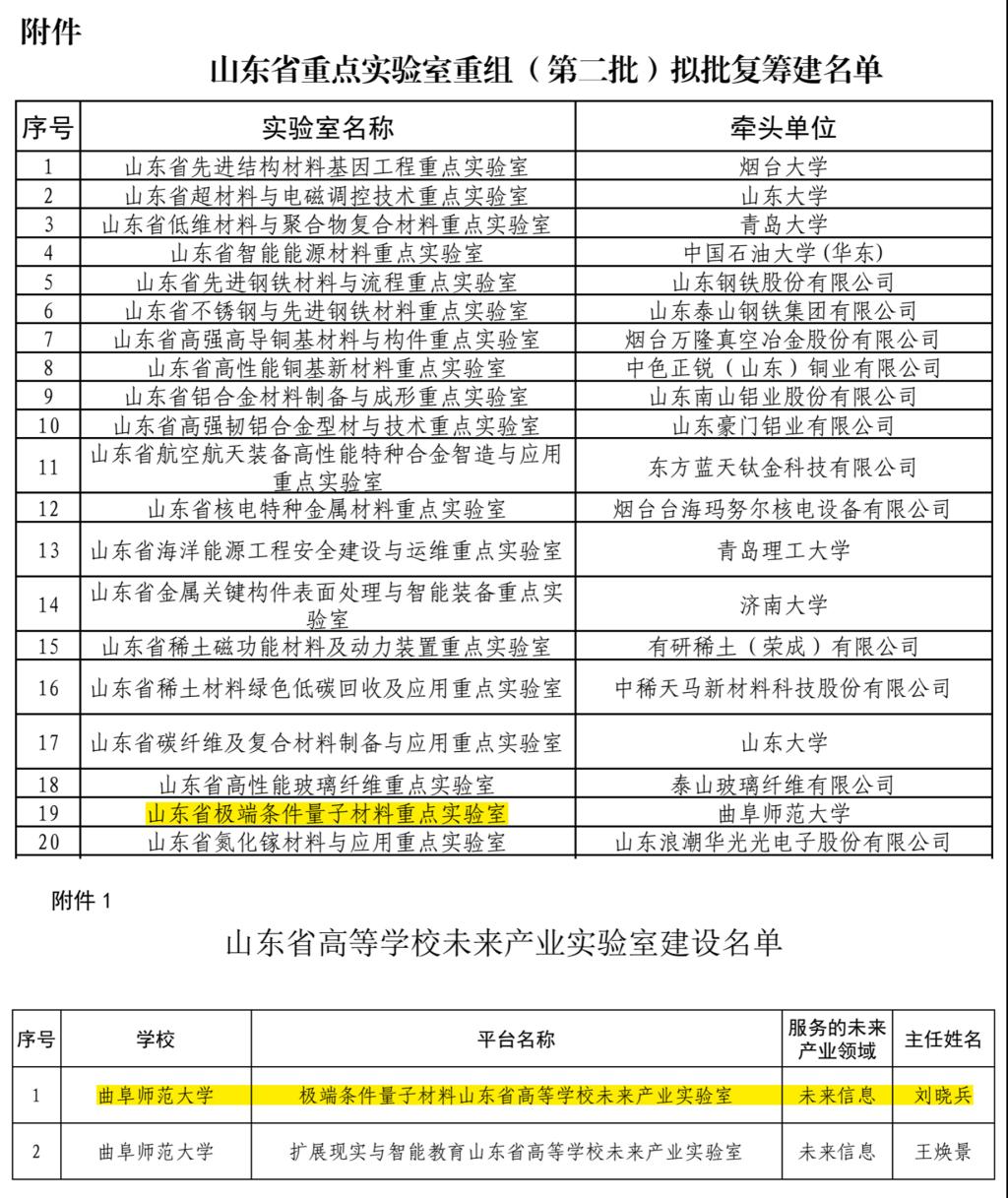 为认真落实习近平总书记对山东“走在前、开新局”的重要指示要求,学院高度重视省高校未来产业实验室和山东省重点实验室等科研平台申报工作,深入推动有组织科研建设。2024年9月,“极端条件量子材料实验室”获批“山东省高等学校未来产业实验室”;2024年12月,“山东省极端条件量子材料重点实验室”获批山东省重点实验室重组(第二批)立项建设,为未来量子科技和信息技术的发展提供重要的物质和技术支持。
