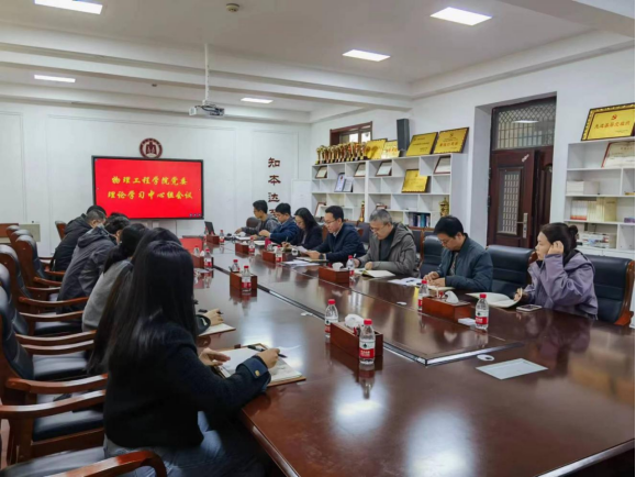 讯(通讯员:孔瑞 摄影:王铭晨)3月25日上午,学院党委理论学习中心组(扩大)在物理楼225会议室举行2024年度第二次集中学习。党委书记于健主持学习,学院党委理论学习中心组成员、各党支部书记参加会议。